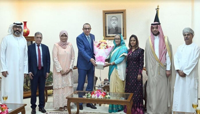 কর্পোরেট সংবাদ ডেস্ক : মুসলিম উম্মাহকে সম্মিলিতভাবে ফিলিস্তিনিদের পাশে দাঁড়ানোর আহ্বান জানিয়েছেন প্রধানমন্ত্রী শেখ হাসিনা। মঙ্গলবার (৩১ জানুয়ারি) সকালে ঢাকায় অবস্থানরত সাতটি ওআইসি সদস্য রাষ্ট্রের রাষ্ট্রদূত ও হাইকমিশনারগণ প্রধানমন্ত্রীর কার্যালয়ে তাঁর সঙ্গে যৌথ সৌজন্য সাক্ষাত করতে এলে প্রধানমন্ত্রী এই আহ্বান জানান।