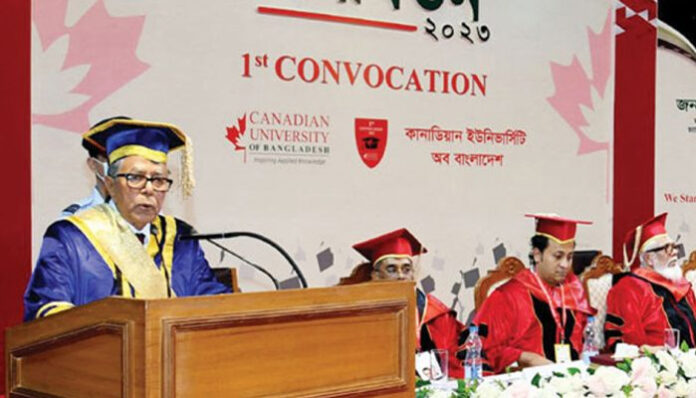 মঙ্গলবার (৩১ জানুয়ারি) বিকেলে রাজধানীর ওসমানী স্মৃতি মিলনায়তনে কানাডিয়ান ইউনিভার্সিটি অফ বাংলাদেশ-এর প্রথম সমাবর্তনে প্রধান অতিথির ভাষণে তিনি এ কথা বলেন।