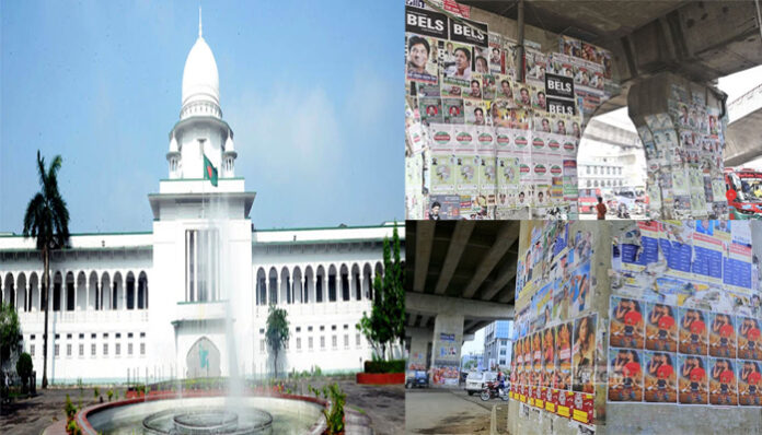 শুনানিতে আদালত বলেন, পোস্টার লাগিয়ে ফ্লাইওভারের পিলার গুলার কী অবস্থা বানিয়ে ফেলছে। প্রতিদিন এগুলার নিচ দিয়ে যাওয়ার সময় দেখে কী যে কষ্ট লাগে। পোস্টার লাগিয়ে আমাদের শহরটার সৌন্দর্য ধ্বংস করে ফেলেছে। এগুলো অপসারণ করতেই হবে।