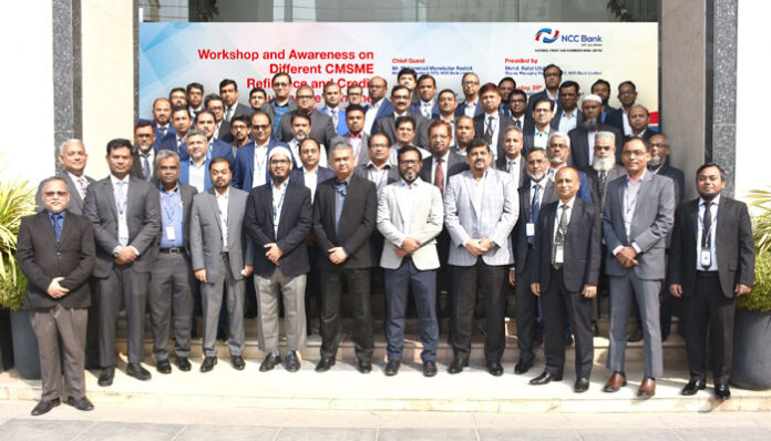 এনসিসি ব্যাংকের উপ-ব্যবস্থাপনা পরিচালক এবং সিআরও মোঃ রাফাত উল্লা খান এর সভাপতিত্বে অনুষ্ঠিত কর্মশালায় বাংলাদেশ ব্যাংকের এসএমই এন্ড স্পেশাল প্রোগ্রামস্ ডিপার্টমেন্ট এর যুগ্ম পরিচালক মোঃ শামস্ তিবরীজ ভূঁইয়া ও ক্রেডিট গ্যারান্টি ডিপার্টমেন্ট এর যুগ্ম পরিচালক মোঃ অলিউল ইসলাম কর্মশালায় বক্তব্য প্রদান করেন।