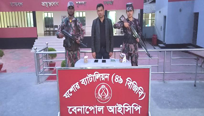 যশোর ৪৯ বিজিবি ব্যাটালিয়নের অধিনায়ক লে. কর্নেল আহমেদ হাসান জামিল জানান, বেনাপোল চেকপোস্ট বিজিবি ক্যাম্পে দায়িত্বরত হাবিলদার মোঃ তোতা মিয়া তার নেতৃত্বে একটি বিশেষ চোরাচালান বিরোধী তল্লাশী অভিযান পরিচালনা করেন। উক্ত অভিযানে বাংলাদেশের অভ্যন্তরে বেনাপোল চেকপোস্ট বন্দরের প্যাসেঞ্জার টার্মিনালের সামনে ভারত হতে আগত সন্দেহভাজন বাংলাদেশি এক পাসপোর্টধারী যাত্রীর ব্যাগ তল্লাশি করে তার ব্যাগের মধ্যে ৯ লাখ ২৬ হাজার ভারতীয় রুপি ও ২ টি মোবাইল পাওয়া যায়। এ সময় তাকে আটক করা হয়।