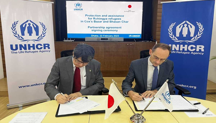 বাংলাদেশে নিযুক্ত জাপানের রাষ্ট্রদূত আইওয়ামা কিমিনোরি এবং বাংলাদেশে ইউএনএইচসিআর প্রতিনিধি জোহানেস ভ্যান ডের ক্লাউ নিজ নিজ সংস্থার পক্ষে আজ এ সংক্রন্ত নতুন অংশিদারিত্ব চুক্তিকে স্বাক্ষর করেন।