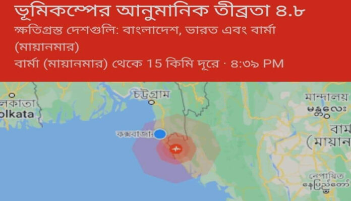 কক্সবাজার জেলা আবহাওয়া অধিদপ্তরের সহকারী আবহাওয়াবিদ আব্দুর রহমান সংবাদ মাধ্যমকে বলেন, রিখটার স্কেলে এ ভূমিকম্পের মাত্রা ৪ দশমিক ৮। ভূমিকম্পটির উৎপত্তিস্থল দক্ষিণ-দক্ষিণপূর্ব মিয়ানমারে। কক্সবাজার সীমান্ত থেকে মিয়ানমারের ১৫ কিলোমিটারের মধ্যে।