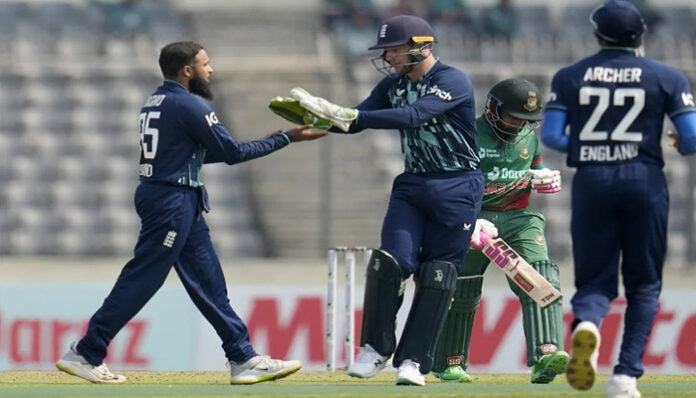 ইংল্যান্ডের হয়ে বল হাতে সমান দুটি করে উইকেট নেন জফরা আর্চার, আদিল রশিদ, মার্ক উড ও মঈন আলি। একটি করে নেন উইল জ্যাকস ও ক্রিস ওকস।