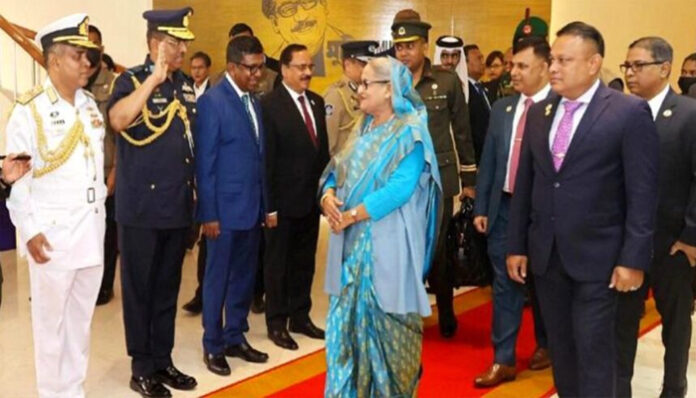 প্রধানমন্ত্রী ও তাঁর সফরসঙ্গীদের নিয়ে বিমান বাংলাদেশ এয়ারলাইন্সের একটি ভিভিআইপি ফ্লাইট (বিজি-৩২৫) আজ সকাল ১১টা ১৫ মিনিটের দিকে হযরত শাহজালাল আন্তর্জাতিক বিমানবন্দর ত্যাগ করে।
