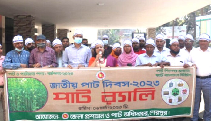 আল আমিন, শেরপুর জেলা প্রতিনিধি: শেরপুরে ৬ মার্চ জাতীয় পাট দিবস পালিত হয়েছে। এ উপলক্ষে সোমবার সকাল সাড়ে ১০টায় জেলা প্রশাসন ও শেরপুর পাট অধিদপ্তরের আয়োজনে জেলা প্রশাসক কার্যালয় চত্বরে জেলা প্রশাসক সাহেলা আক্তার এক বর্ণাঢ্য র্যালি উদ্বোধন করেন। পরে র্যালিটি জেলা শহরের প্রধান সড়ক প্রদক্ষিণ শেষে পুনরায় সেখানে গিয়ে শেষ হয়।