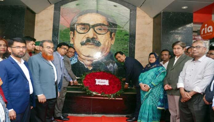 কর্পোরেট সংবাদ ডেস্ক:ঐতিহাসিক ৭ই মার্চ উপলক্ষে জাতির পিতা বঙ্গবন্ধু শেখ মুজিবুর রহমানের প্রতিকৃতিতে শ্রদ্ধা জানিয়েছে রাষ্ট্রায়ত্ব রূপালী ব্যাংক লিমিটেড। ব্যাংকের প্রধান কার্যালয়ে স্থাপিত জাতির পিতার প্রতিকৃতিতে ফুল দিয়ে শ্রদ্ধা জানান ব্যাংকের চেয়ারম্যান কাজী ছানাউল হক এবং ম্যানেজিং ডিরেক্টর অ্যান্ড সিইও মোহাম্মদ জাহাঙ্গীর।