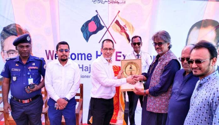 মোঃ হাফিজ ,গলাচিপা (পটুয়াখালী) প্রতিনিধি: বাংলাদেশের ব্রুনাই হাই কমিশনার হাজী মোহাম্মদ হারিজ বিন ওসমান পটুয়াখালী জেলার গলাচিপা উপজেলার কলাগাছিয়া গ্রামে একটি উন্নত জাতের তরমুজ খামার পরিদর্শন করেন। কলাগাছিয়ার কৃতি সন্তান ও মরহুম সেকান্দার আলী চৌধুরীর বড়পুত্র এস এম শওকত আলী চৌধুরী জিয়ার শেহজাদ এগ্রো কৃষি ফার্ম ও চৌধুরী বাড়ির একটি পুরানো মসজিদ পরিদর্শন করেন। শুক্রবার দুপুর ১২ঘটিকায় পটুয়াখালী থেকে গাড়িযোগে সরকারি প্রটোকলে প্রশাসন ও পুলিশি নিরাপত্তায় ঘটনাস্থল পরিদর্শনে যান। দুপুরে জুমার নামাজ আদায় করে মাঠ পরিদর্শন করেন। তার সফর সঙ্গী হিসেবে ছিলেন, পটুয়াখালীর পৌর মেয়র মোঃ মহিউদ্দিন আহমেদ, গলাচিপা উপজেলা নির্বাহী অফিসার মোঃ মহিউদ্দিন আল হেলাল, পটুয়াখালী জেলা প্রশাসনের ম্যাজিস্ট্রেট মোঃ সাকিবুল আলম, জেলা সিআইডি (ওসি) মোঃ দেলোয়ার হোসেন, গলাচিপা থানার অফিসার্স ইনচার্জ শোনিত কুমার গায়েন, এ কে এম সায়েদাদ হোসাইন, এসিস্ট্যান্ট এডিটর, ডিপ্লোম্যাট, গলাচিপা প্রেসক্লাব সভাপতি মু. খালিদ হোসেন মিলটন ও ব্রুনাই প্রতিরক্ষা মন্ত্রণালয়ের ইঞ্জিনিয়ার, আলহাজ্ব মোঃ কামরুল চৌধুরী, উপজেলা টিম লিডার, ঘূর্ণিঝড় প্রস্তুতি কর্মসূচি (সিপিপি) আবু হেনা মোঃ শোয়েব প্রমূখ । ব্রুনাই হাই কমিশনারকে গলাচিপা উপজেলা প্রশাসন ও কলাগাছিয়া শেহজাদ এগ্রো ফার্মের স্বত্বাধিকারী এসএম শওকত আলী চৌধুরী জিয়া সহ এলাকার গণ্যমান্য ব্যক্তিবর্গ শ্রদ্ধা ও শুভেচ্ছা জ্ঞাপন করেন।