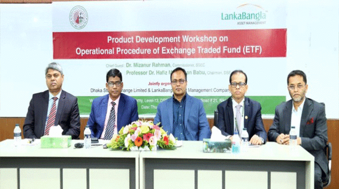 নিজস্ব প্রতিবেদক : পণ্যের বৈচিত্র্য আনয়নে ইতোমধ্যে পুঁজিবাজারে ইসলামী সুকুক বন্ড, সরকারি সিকিউরিটিজ, এসএমই কোম্পানি এবং এটিবি বোর্ডে লেনদেন শুরু হয়েছে ঢাকা স্টক এক্সচেঞ্জে (ডিএসই)৷ এদিকে চালুর কার্যক্রমও চূড়ান্ত পর্যায়ে রয়েছে এক্সচেঞ্জ ট্রেডেড ফান্ড বা ইটিএফের। ইটিএফ চালুর প্রাক্কালে ডিএসই এবং লংকাবাংলা সিকিউরিটিজ লিমিটেড এর যৌথ উদ্যোগে এক্সচেঞ্জ ট্রেডেড ফান্ড (ইটিএফ) এর অপারেশনাল প্রসিডিউর বিষয়ক এক কর্মশালা অনুষ্ঠিত হয়৷ আজ (১৬ মার্চ)ইটিএফের অপারেশনাল প্রসিডিউর বিষয়ক এ কর্মশালায় প্রধান অতিথি হিসেবে উপস্থিত ছিলেন বিএসইসির কমিশনার ড. মিজানুর রহমান৷ এতে সভাপতিত্ব করেন ডিএসই’র চেয়ারম্যান অধ্যাপক ড. হাফিজ মুহাম্মদ হাসান বাবু৷