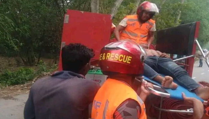 আজ দুপুর ১২টার দিকে উপজেলার বোয়ালিয়া সরকারি প্রাথমিক বিদ্যালয়ের পাশে এ ঘটনাটি ঘটে। স্থানীয় ও ফায়ার সার্ভিস জানায়,উপজেলার নিমতলা গ্রামের আরিফুল ইসলামের ছেলে মুন্না(২১) মোটরসাইকেল যোগে নানি বাড়ি থেকে বাড়ি ফেরার পথে বোয়ালিয়া সরকারি প্রাথমিক বিদ্যালয়ের পাশে বিপরীত দিক থেকে আসা একটি ইজিবাইকের সাথে মুখোমুখি সংঘর্ষে মুন্নার ডান হাত বিচ্ছিন্ন হয়ে যায়।