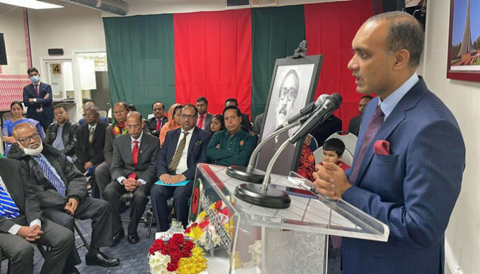 ইমা এলিস, নিউ ইয়র্ক: মহান স্বাধীনতা ও জাতীয় দিবস উপলক্ষে নিউ ইয়র্কে বাংলাদেশ কনস্যুলেট জেনারেল কার্যালয়ে সোমাবার (২৭ মার্চ) প্রবাসী বাংলাদেশীদের অংশগ্রহণে একটি অভ্যর্থনা অনুষ্ঠানের আয়োজন করা হয়। যেখানে জাতিসংঘে নিযুক্ত বাংলাদেশের রাষ্ট্রদূত ও স্থায়ী প্রতিনিধি মোহাম্মদ আব্দুল মুহিত, যুক্তরাষ্ট্র প্রবাসী বীরমুক্তিযোদ্ধাগণ, যুক্তরাষ্ট্র আওয়ামী লীগ ও এর সহযোগী সংগঠনের নেতৃবৃন্দসহ অন্যান্য রাজনৈতিক ব্যক্তিবর্গ, সামাজিক, সাংস্কৃতিক ও মিডিয়া ব্যক্তিত্বসহ কমিউনিটির সদস্যবৃন্দ উপস্থিত ছিলেন। এ খবর জানিয়েছে মার্কিন সংবাদমাধ্যম বাংলা প্রেস।