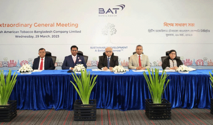 নিজস্ব প্রতিবেদক : ব্রিটিশ আমেরিকান টোব্যাকো (বিএটি) বাংলাদেশ কোম্পানি লিমিটেডের বিশেষ সাধারণ সভা (ইজিএম) অনুষ্ঠিত হয়েছে। দেশ ও বিদেশের বিভিন্ন স্থান থেকে উল্লেখযোগ্য সংখ্যক শেয়ারহোল্ডারদের উপস্থিতিতে আজ, (২৯ মার্চ) বুধবার সকাল সাড়ে ১০টায় কোম্পানির এই বিশেষ সাধারণ সভা (ইজিএম) ভার্চুয়ালি অনুষ্ঠিত হয়।