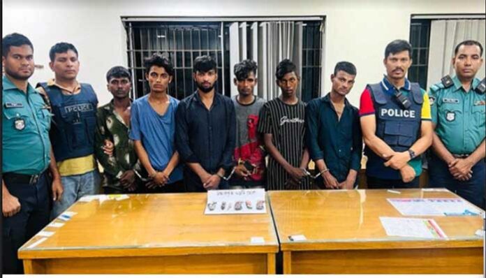 গ্রেফতাররা হলেন, মো. বাবলু (২৮), মো. আল আমিন (২২), মো. আরাফাত (২৫), মো. আরমান হোসেন (২০), মো. সুরুজ (১৯) ও মো. দেলোয়ার হোসেন (২৬)।