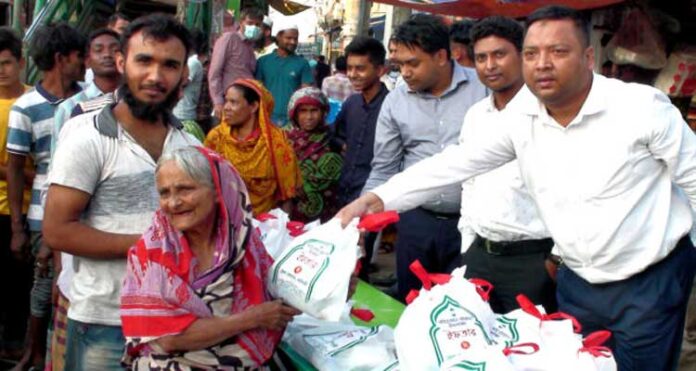 সাইফুল ইসলাম রুদ্র, নরসিংদী জেলা প্রতিনিধি: নরসিংদীতে ছিন্নমূল, অসহায় পথচারীদের মধ্যে প্রতিদিন দুশজন করে পাবেন ইফতার সামগ্রী। এরই অংশ হিসেবে রোববার বিকেলে ইফতার সামগ্রী বিতরণ কার্যক্রম উদ্বোধন করা হয়েছে। নরসিংদী জেলা প্রশাসক আবু নইম মোহাম্মদ মারফ খানের পক্ষ থেকে শহরের জেলখানা মোড় এলাকায় দুশজন অসহায় পথচারীদের মাঝে ইফতার বিতরণ করেন অতিরিক্ত জেলা প্রশাসক (সার্বিক) মোস্তফা মনোয়ার। ইফতার বিতরণকালে রিকসা চালক, ভিক্ষুক, গাড়ির হেলপার ও চালকসহ ফুটপাতের অসহায় মানুষ জনের ভীড় লক্ষ করা যায়। শুধু তাই নয়, অসহায় নারী, হিজড়া ও পথশিশুরাও লাইনে দাঁড়িয়ে ইফতার গ্রহন করে। ইফতার সামগ্রীর মধ্যে ছোলা, পানি, মিষ্টি, মুড়ি, বেগুনি ও খাজুর দিয়ে প্যাকেটজাত। এক প্যাকেটে একসাথে ইফতারির সকল উপকরণ পেয়ে খুশি আফিয়া নামে এক নারী। তিনি অনেকটা হাফ ছেড়ে বলেন, রোজা আসার পর একসাথে এতোগুলো জিনিস দিয়ে ইফতার করতে পারিনি। আজ মন ভরে খাইমু।