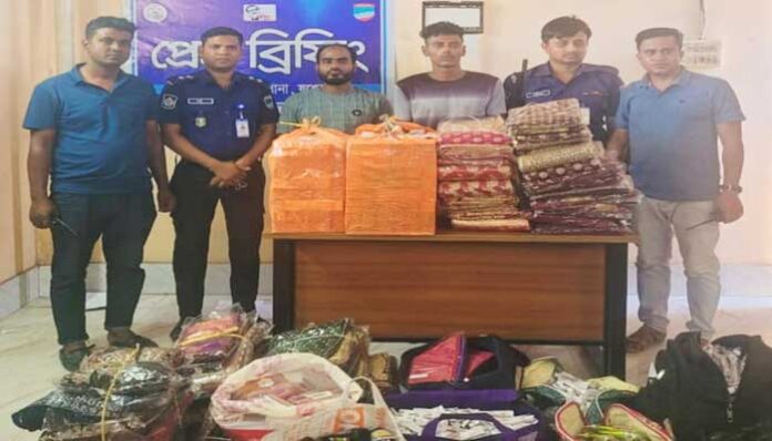 পোর্ট থানার ভারপ্রাপ্ত কর্মকর্তা (ওসি) কামাল হোসেন ভুইয়া জানান, জেলা পুলিশ সুপারপ্রলয় কুমার জোয়ারদারের নিদের্শক্রমে বেনাপোল পোর্ট থানা পুলিশ ভবেরবেড় রেল স্টেশন এলাকায় অভিযান চালায়। এসময় চোরাইপথে আসা ভারতীয় শাড়ি, থ্রীপিচ, লেহেঙ্গা, থান কাপড় ও বিভিন্ন প্রসাধনীসহ দুই চোরাকারবারীকে গ্রেফতার করা হয়। গ্রেফতারকৃত আসামীদ্বয়ের বিরুদ্ধে আইনগত ব্যবস্থা প্রক্রিয়াধীন রয়েছে বলে জানান ওসি।