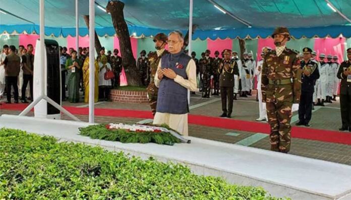 তারপর পরই রাষ্ট্রপতি, বঙ্গবন্ধু ও ১৯৭৫ সালের ১৫ আগস্ট তাঁর পরিবারের শহীদ সদস্যদের রুহের মাগফিরাত কামনা করে ফাতিহা পাঠ, দোয়া ও বিশেষ মোনাজাতে অংশ নেন। এ সময় রাষ্ট্রপতিকে তিন বাহিনীর পক্ষ থেকে গার্ড অব অনার প্রদান করা হয়। শ্রদ্ধা নিবেদন শেষে তিনি সমাধি কমপ্লেক্সে রক্ষিত পরিদর্শন বইতে মন্তব্য লিখে স্বাক্ষর করেন।