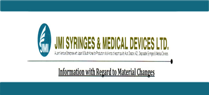 Information with Regard to Material Changes of JMI Syringes & Medical Devices Ltd.