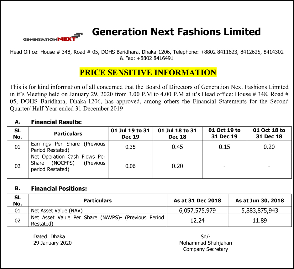 Homeপ্রাইস সেনসিটিভ ইনফরমেশনPrice Sensitive Information of Generation Next Fashions Ltd.