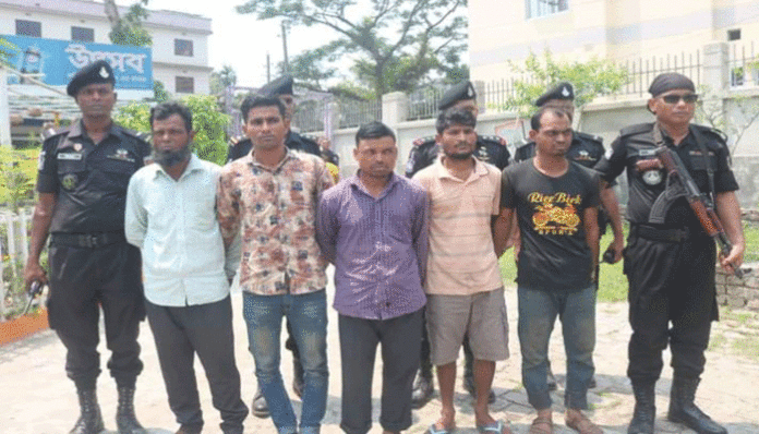 গ্রেফতারকৃত অন্যান্যরা হলেন- সদর উপজেলার বলাইয়েরচর ইউনিয়নের দুছুরা ছনকান্দা (কালাম বাজার) গ্রামের মো. মোফাজ্জল হোসেনের ছেলে মো. আবুল হোসেন (২৭), জামালপুর জেলার সদর উপজেলার জিগাতলা গ্রামের মো. আজাহার আলীর ছেলে মো. রুবেল হোসেন (৩৫), একই উপজেলার কোচনধরা গ্রামের মৃত জিন্নাত আলীর ছেলে মো. সুলতান মিয়া (৪৫) ও হরিপুর গ্রামের আঃ করিমের ছেলে মো. মঞ্জুরুল হক (৩০)।