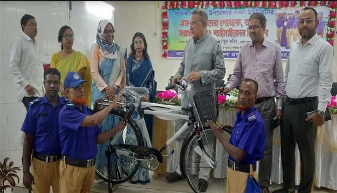 শহীদুজ্জামান শিমুল, সাতক্ষীরা প্রতিনিধি : সাতক্ষীরায় গ্রাম পুলিশদের মাঝে বাইসাইকেল, পোষাক, ও অন্যান্য সরঞ্জামাদি বিতরণ করা হয়েছে।