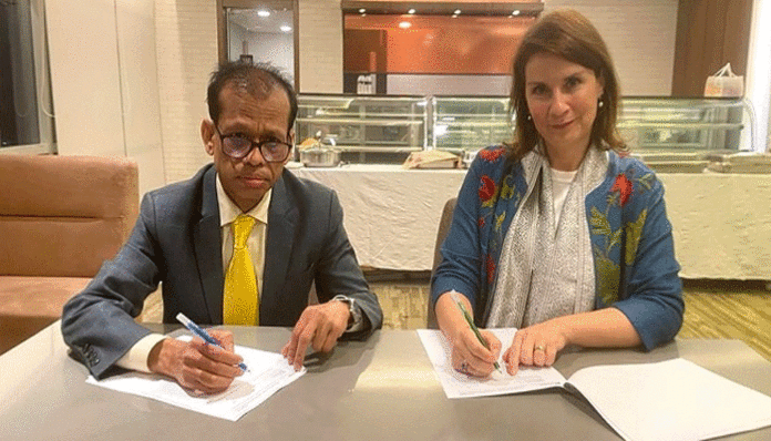 ডিএসইর ভারপ্রাপ্ত ব্যবস্থাপনা পরিচালক এম সাইফুর রহমান মজুমদার এবং নাসডাক টেকনোলজি এবির ব্যবস্থাপনা পরিচালক মিস ভার্জিন বারবট সম্প্রতি নিজ নিজ প্রতিষ্ঠানের পক্ষে চুক্তিতে স্বাক্ষর করেন