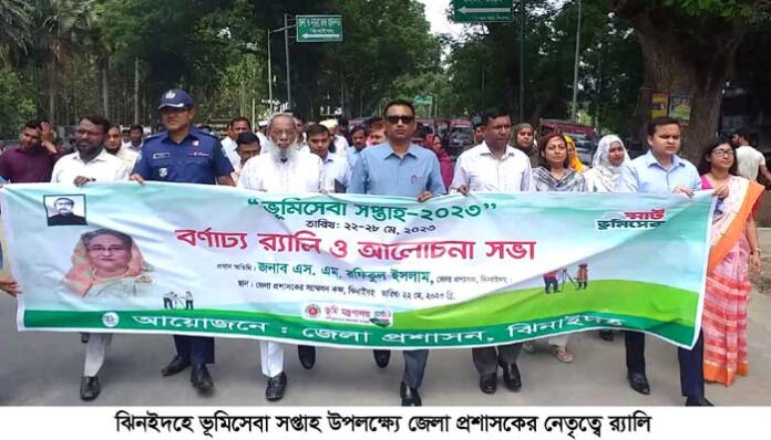 আতিকুর রহমান, ঝিনাইদহ প্রতিনিধিঃ ‘স্মার্ট ভুমি সেবায় ভুমি মন্ত্রণালয়’ এই শ্লোগানকে প্রতিপাদ্য করে ঝিনাইদহে শুরু হয়েছে ভূমি সেবা সপ্তাহ। জেলা প্রশাসনের আয়োজনে সোমবার সকালে জেলা প্রশাসকের কার্যালয়ের সামনে থেকে একটি র্যা লী বের করা হয়। র্যা লীটি শহরের বিভিন্ন সড়ক ঘুরে একই স্থানে এসে শেষ হয়।