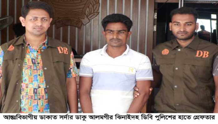 আতিকুর রহমান, ঝিনাইদহ প্রতিনিধিঃ দেশের বিভিন্ন থানায় দায়েরকৃত ২০ মামলার আসামী আন্তঃবিভাগীয় ডাকাত সর্দার ডাকু আলমগীরকে গ্রেফতার করেছে ঝিনাইদহ ডিবি পুলিশ।