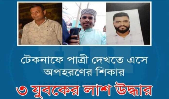 পারিবারিক সূত্রে জানা যায়, অপহৃত ৩ বন্ধু গত মাসের ২৮ এপ্রিল টেকনাফে পাত্রী দেখতে আসে। প্রতিমধ্যে সড়ক থেকে তাদের বহনকারী সিএনজি থামিয়ে একদল অপহরণকারীরা পাহাড়ের গহীন জঙ্গলে নিয়ে যায়। পরে তাদের ছেড়ে দিতে ৩০ লক্ষ টাকা মুক্তিপণ দাবি করে নির্যাতনের ভিডিও পাঠায়।