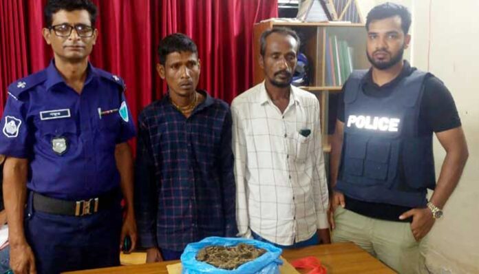 এসময় আটককৃত ব্যক্তিদ্বয়ের হেফাজত থেকে একটি শপিং ব্যাগের ভেতর থেকে পলিথিনে মোড়ানো অবস্থায় ১ কেজি ৫০ গ্রাম গাঁজা জব্দ করা হয়।