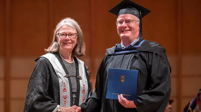 আন্তর্জাতিক ডেস্ক : বিশ্ববিদ্যালয়ে ভর্তির ৫ দশকেরও বেশি সময় পরে স্নাতক ডিগ্রি অর্জন করলেন আর্থার রস। গত বৃহস্পতিবার (২৬ মে) কানাডার ইউনিভার্সিটি অব ব্রিটিশ কলম্বিয়া (ইউবিসি) থেকে ব্যাচেলর অব আর্টস (বিএ) ডিগ্রি পেয়েছেন ৭১ বছর বয়সী এ ব্যক্তি। আর এর জন্য তার সময় লেগেছে ৫৪ বছর। ফলে আর্থারই এখন বিশ্ববিদ্যালয় সনদ অর্জনে বিশ্বের ধীরতম শিক্ষার্থী।
