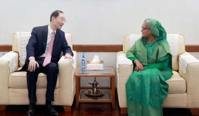এ সময় প্রধানমন্ত্রীর এম্বাসাডর-এটলার্জ মোহাম্মদ জিয়াউদ্দিন, প্রধানমন্ত্রীর মুখ্য সচিব মো. তোফাজ্জেল হোসেন মিয়া, পররাষ্ট্র মন্ত্রণালয়ের সচিব (মেরিটাইম অ্যাফেয়ার্স ইউনিট) রিয়ার অ্যাডমিরাল (অব.) মো. খুরশেদ আলম এবং বাংলাদেশে নিযুক্ত চীনের রাষ্ট্রদূত ইয়াও ওয়েন উপস্থিত ছিলেন। চীনের উপ-পররাষ্ট্র মন্ত্রী সান ওয়েইডং দুই দিনের সরকারি সফরে শুক্রবার রাতে ঢাকা এসেছেন। সূত্র-বাসস।