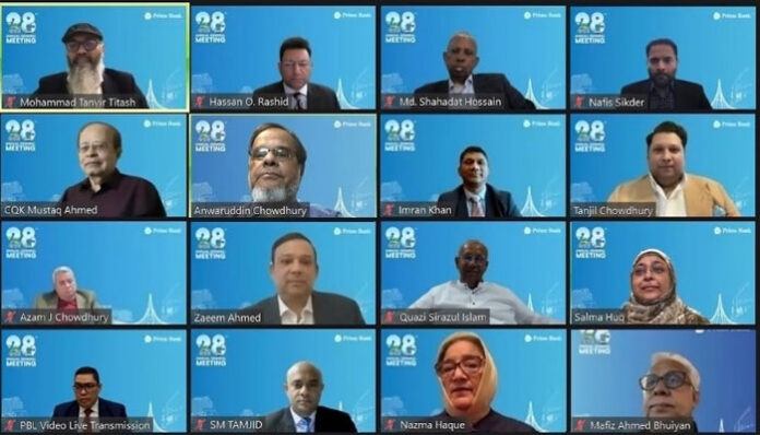 বার্ষিক সাধারণ সভায় সভাপতিত্ব করেন প্রাইম ব্যাংকের পরিচালনা পর্ষদের চেয়ারম্যান তানজিল চৌধুরী। সভায় অন্যান্যের মধ্যে ব্যাংকের সাবেক চেয়ারম্যান আজম জে চৌধুরী, ভাইস চেয়ারম্যান- মো: শাহাদাত হোসেন এবং নাজমা হক, নির্বাহী কমিটির চেয়ারম্যান ইমরান খান, অডিট কমিটির চেয়ারম্যান আনোয়ার উদ্দিন চৌধুরী এফসিএ, রিক্স ম্যানেজমেন্ট কমিটির চেয়ারম্যান জাইম আহমেদ এবং ব্যাংকের ব্যবস্থাপনা পরিচালক ও প্রধান নির্বাহী কর্মকর্তা হাসান ও. রশীদ উপস্থিত ছিলেন। অনুষ্ঠান পরিচালনা করেন ব্যাংকের কোম্পানি সচিব তানভীর সিদ্দিকী।