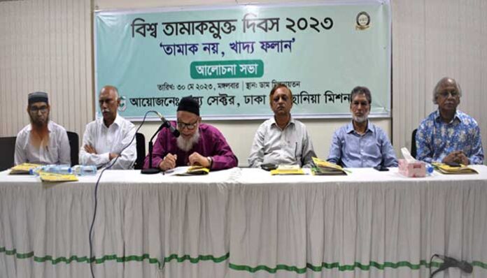মঙ্গলবার (৩০ মে) সকালে ধানমন্ডিস্থ ঢাকা আহছানিয়া মিশন অডিটোরিয়ামে বিশ্ব তামাক মুক্ত দিবস-২০২৩ উপলক্ষে আয়োজিত ‘তামাক নয়, খাদ্য ফলান’ শীর্ষক আলোচনা সভায় এ দাবি জানিয়েছেন বক্তারা।