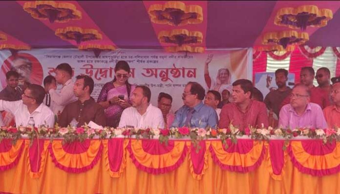 অনুষ্ঠানে উপস্থিত ছিলেন, সিরাজগঞ্জ -৫ আসনের সাংসদ আব্দুল মমিন মন্ডল এমপি, নাগরপুরের সাংসদ মো: আহসানুল ইসলাম টিটু , সিরাজগঞ্জের জেলা প্রশাসক মীর মোহাম্মদ মাহবুবুর রহমান, পাউবো নির্বাহী মহাপরিচালক মো: রমজান আলী প্রামানিক, সিরাজগঞ্জ জেলা আওয়ামীলীগের সভাপতি কেএম হোসেন আলী হাসান, অর্থপেডিক্স সোসাইটির মহাসচিব প্রফেসর ডা. জাহাঙ্গীর আলম, চৌহালী উপজেলা পরিষদের চেয়ারম্যান মো: ফারুক হোসেন, ভারপ্রাপ্ত নির্বাহীর অফিসার (ইউএনও) মোহাম্মদ সাইফুল ইসলাম, উপজেলা আ’লীগের সভাপতি তাজ উদ্দিন , উপজেলা ভাইস চেয়ারম্যান মোল্লা বাবুল আক্তার, থানার ওসি হারুন অর রশিদ, আনসার ও ভিডিপির অফিসার আবুল বশির,আ’লীগের সাংগঠনিক সম্পাদক মাসুম সিকদার, খাষকাউলিয়া ইউপি চেয়ারম্যান আবু ছাইদ বিদ্যুত ও বাঘুটিয়া ইউপি চেয়ারম্যান আবুল কালাম মোল্যা প্রমুখ।,