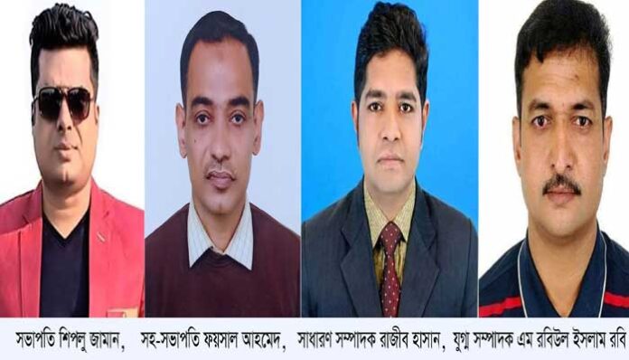 শনিবার দুপুরে শহরের এইচএসএস সড়কের আহার রেস্টুরেন্টে এ কমিটি গঠন করা হয়। উপস্থিত সকলের সম্মতিতে আরটিভির জেলা প্রতিনিধি শিপলু জামানকে সভাপতি ও একাত্তর টিভির জেলা প্রতিনিধি রাজীব হাসানকে সাধারন সম্পাদক করা হয়।