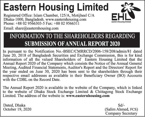 Homeপ্রাইস সেনসিটিভ ইনফরমেশনInformation to the Shareholders Regarding Submission of Annual Report 2020