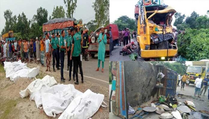 সিলেট প্রতিনিধি : সিলেটের দক্ষিণ সুরমার নাজিরবাজার এলাকায় মালবাহী ট্রাক ও শ্রমিকবাহী পিকআপ ভ্যান সংঘর্ষের ঘটনায় নিহতের সংখ্যা বেড়ে ১৪ জনে দাঁড়িয়েছে।