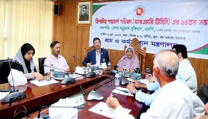 মঙ্গলবার (৬ জুন) রাজধানীর বিজয়নগর শ্রম ভবনের সম্মেলন কক্ষে জাতীয় ত্রিপক্ষীয় পরামর্শ পরিষদ- টিসিসি এর ৭৫ তম এবং আরএমজি টিসিসির ১৫ তম সভায় সভাপতি হিসেবে তিনি এ আহ্বান জানান।