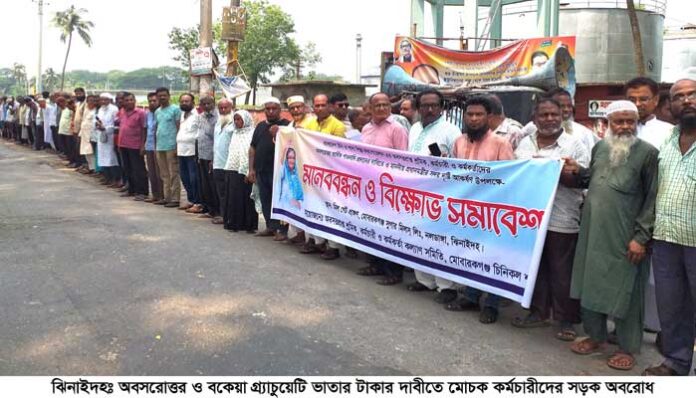 আতিকুর রহমান, ঝিনাইদহ প্রতিনিধি: অবসরোত্তর ও বকেয়া গ্র্যাচুয়েটি ভাতার দাবিতে ঝিনাইদহে মানববন্ধন ও সড়ক অবরোধ করেছে মোবারকগঞ্জ সুগার মিলের অবসরপ্রাপ্ত কর্মচারীরা।