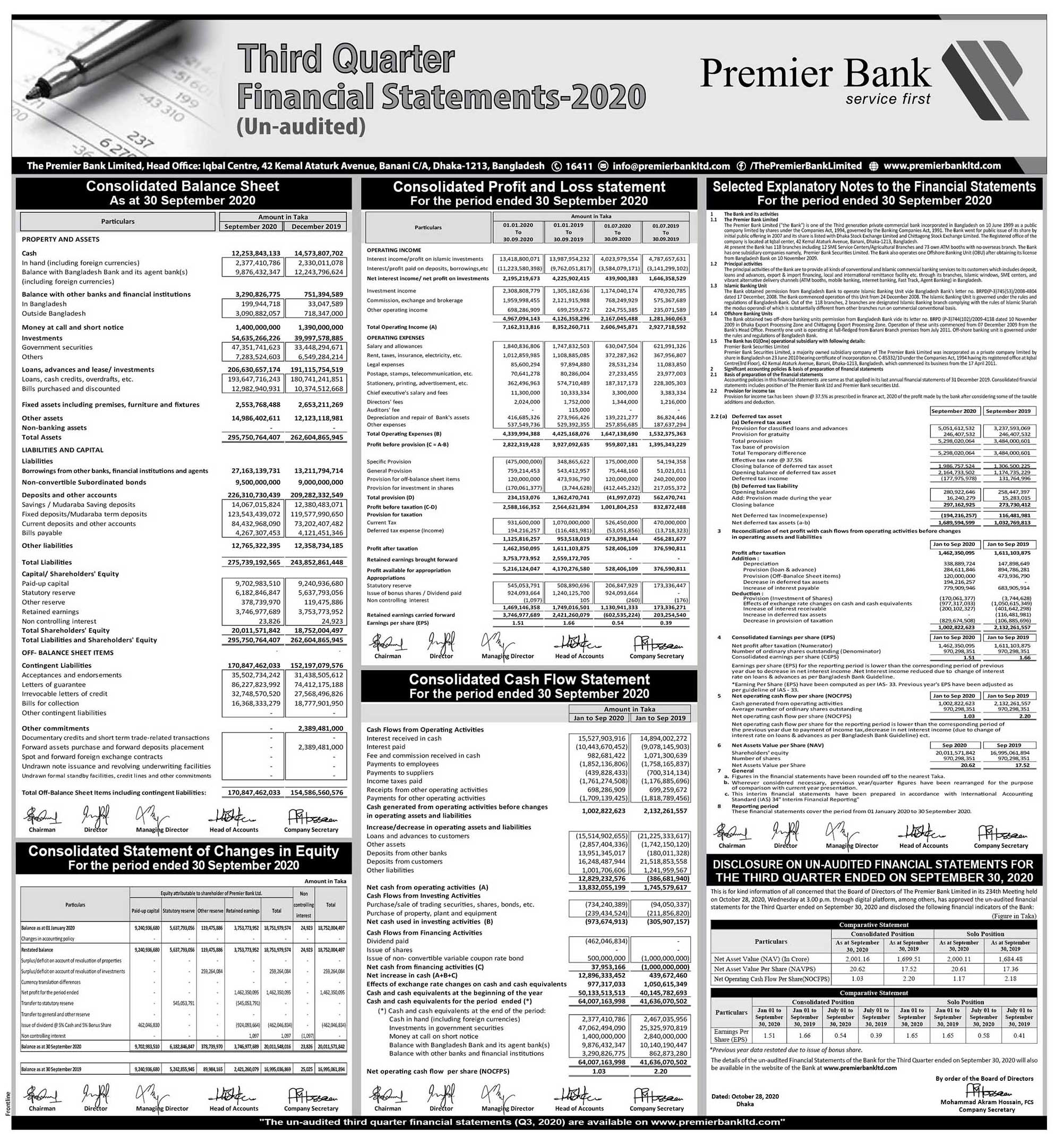 Homeপ্রাইস সেনসিটিভ ইনফরমেশন3rd Quarter Financial Statements-2020 (Un-Audited) of Premier Bank