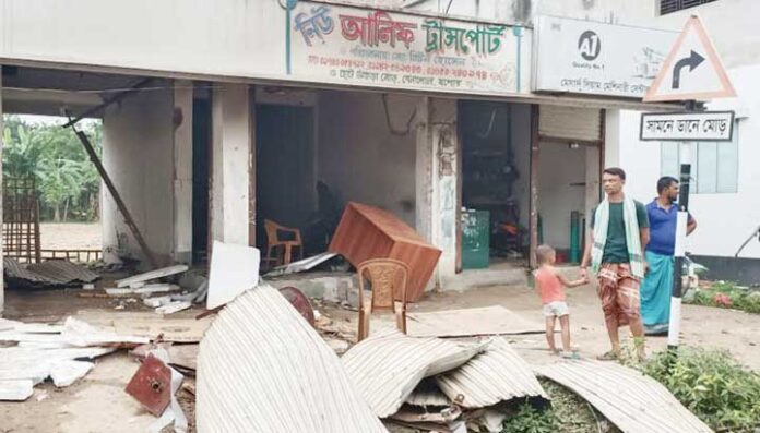 বেনাপোল প্রতিনিধি : যশোরের বেনাপোল পোর্ট থানার বন্দর এলাকার ছোটআঁচড়া মোড়ে একটি ট্রান্সপোর্ট অফিসে রহস্যজনক শক্তিশালী ককটেল বিস্ফোরণের ঘটনা ঘটেছে। এতে অফিসে আগুন লেগে যায়। বিস্ফোরনে দোকানের মালামাল পুড়ে ভস্মিভূত হয়েছে। উড়ে গেছে দোকানের শাটার। ভবনের দেয়াল ধসে পড়েছে। ক্ষতিগ্রস্ত হয়েছে পাশের দুটি ভবন। পুলিশ ঘটনাস্থল পরিদর্শন করেছেন। বিস্ফোরিত ককটেলের সরজ্ঞামাদি জব্দ করেছে পুলিশ।