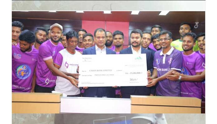 কর্পোরেট ডেস্ক: শেখ হাসিনা আন্তঃব্যাংক ফুটবল টুর্নামেন্ট ২০২৩ এর চ্যাম্পিয়ন ইউনিয়ন ব্যাংক লিমিটেডের ফুটবল দলকে রুপায়ন গ্রুপ সংবর্ধনা এবং ২৫.০০ লক্ষ টাকার চেক পুরষ্কার হিসেবে প্রদান করে।