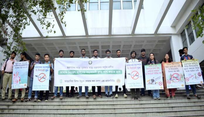 মঙ্গলবার (১৩ জুন) দুপুরে বিশ্ববিদ্যালয় ক্যাম্পাসে আহ্ছানিয়া মিশন ইয়ূথ ফোরাম ফর হেল্থ এন্ড ওয়েলবিয়িং আয়োজিত তামাক বিরোধী ক্যাম্পেইনে এমন দাবি জানায় শিক্ষার্থীরা।