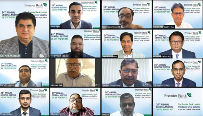 নিজস্ব প্রতিবেদক : দি প্রিমিয়ার ব্যাংক লিমিটেডের ২৪তম বার্ষিক সাধারণ সভা (এজিএম) বুধবার (১৪ জুন) সকাল ১১টায় ডিজিটাল প্লাটফর্মে অনুষ্ঠিত হয়েছে। এবারের বার্ষিক সাধারণ সভায়, নিরীক্ষীত বার্ষিক প্রতিবেদন, ১২.৫০% নগদ এবং ৭.৫০% স্টক লভ্যাংশ ও সকল এজেন্ডা অনুমোদন করেন শেয়ারহোল্ডাররা।