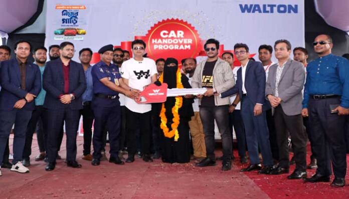 সোমবার (১২ জুন, ২০২৩) বিকেলে রাণীনগর আবাদপুকুর উচ্চ বিদ্যালয় মাঠে আয়োজিত এক জমকালো অনুষ্ঠানে খাদিজা বিবির হাতে গাড়ির চাবি তুলে দেন ওয়ালটন প্লাজার চিফ এক্সিকিউটিভ অফিসার (সিইও) মো. রায়হান, ওয়ালটনের ডেপুটি ম্যানেজিং ডিরেক্টর মো. হুমায়ুন কবীর, সিনিয়র এক্সিকিউটিভ ডিরেক্টর জনপ্রিয় চিত্রনায়ক আমিন খান এবং বাংলা চলচ্চিত্রের নতুন প্রজন্মের নায়ক মামনুন হাসান ইমন।