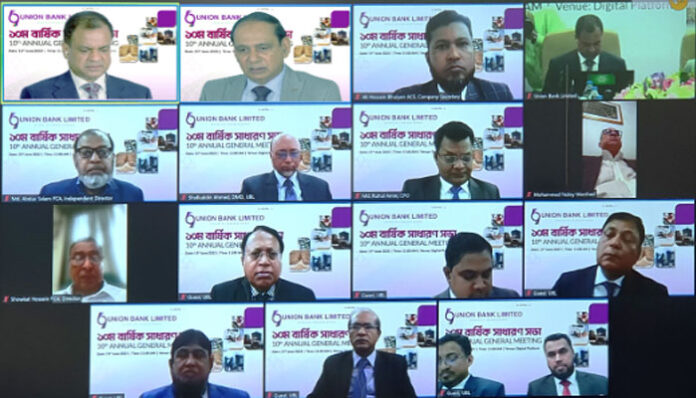 নিজস্ব প্রতিবেদক : পুঁজিবাজারে তালিকাভূক্ত কোম্পানি ইউনিয়ন ব্যাংক লিমিটেডের ১০ম বার্ষিক সাধারণ সভা (এজিএম) বৃহস্পতিবার (১৫ জুন) বেলা ১১টায় ডিজিটাল প্লাটফর্মে অনুষ্ঠিত হয়েছে।