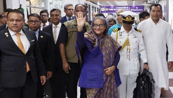শুক্রবার (১৬ জুন) রাত ১টা ৫৫ প্রধানমন্ত্রী ও তাঁর সফরসঙ্গীদের বহনকারী বিমান বাংলাদেশ এয়ারলাইন্সের একটি ফ্লাইট ঢাকায় হযরত শাহজালাল আন্তর্জাতিক বিমানবন্দরে অবতরণ করে।