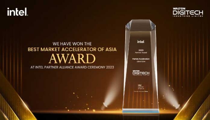 কপোরেট ডেস্ক : মার্কিন যুক্তরাষ্ট্রভিত্তিক বিশ্বখ্যাত প্রযুক্তি প্রতিষ্ঠান ইন্টেল করপোরেশনের ‘বেস্ট মার্কেট এক্সিলারেশন’ পুরস্কার পেলো ওয়ালটন ডিজি-টেক ইন্ডাস্ট্রিজ লিমিটেড। বাংলাদেশের প্রথম কোনো প্রযুক্তিপণ্য নির্মাতা প্রতিষ্ঠান হিসেবে ইন্টেলের মর্যাদাকর এই পুরস্কার পেলো ওয়ালটন ডিজি-টেক। অরিজিনাল ইকুইপমেন্ট ম্যানুফ্যাকচারিং (ওইএম) এবং অরিজিনাল ডিজাইন ম্যানুফ্যাকচারিং (ওডিএম) বিভাগে যুগান্তকারী উদ্ভাবন ও প্রযুক্তির শ্রেষ্ঠত্ব প্রদর্শনে অবদান রাখায় এই পুরস্কার পেয়েছে ওয়ালটন ডিজি-টেক।