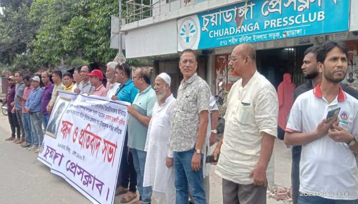 এদিন চুয়াডাঙ্গা প্রেসক্লাব মিলনায়তনে এক বিক্ষোভ সভা অনুষ্ঠিত হয়। পরে দুপুর সাড়ে ১২টায় মানববন্ধন কর্মসূচি শুরু হয়ে দুপুর দেড়টা পর্যন্ত চলে।
