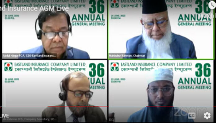 নিজস্ব প্রতিবেদক : পুঁজিবাজারে তালিকাভূক্ত কোম্পানি ইস্টল্যান্ড ইন্সুরেন্স লিমিটেডের ৩৬ তম বার্ষিক সাধারণ সভা (এজিএম) রবিবার (২৫ জুন) বিকাল ৩ টায় ডিজিটাল প্লাটফর্মে অনুষ্ঠিত হয়েছে।